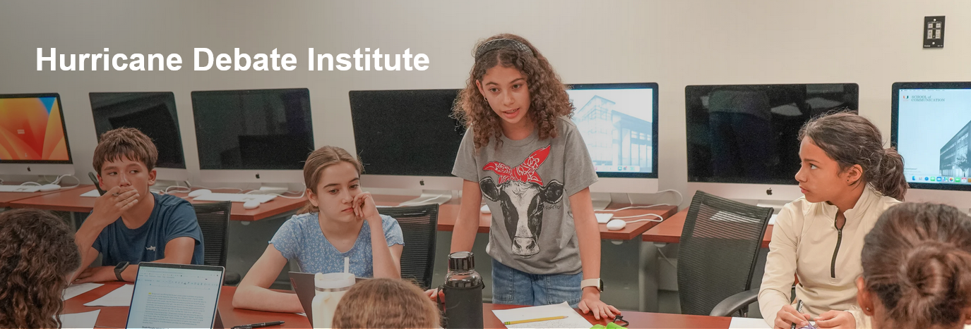 The University of Miami Debate Team invites Middle School and High School students of all experience levels to participate in the 35th Hurricane Debate Institute offering instruction and practice in: Public Speaking, Argumentation, Debate, and Public Forum.